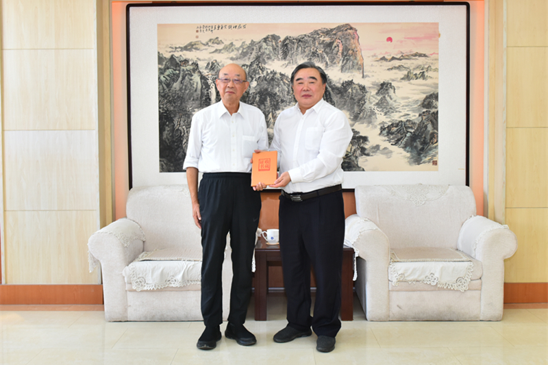 陈颙院士向学校捐赠了84册个人所收藏的学术著作,姚庆国为陈颙院士颁发了捐赠证书。