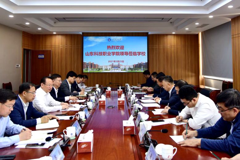 5月25日,山东科技职业学院党委书记郑德前,党委委员、副院长刘同顺、娄风来一行来校访问。校党委书记罗公利会见了客人,双方就学校学科发展、人才培养等方面进行了深入交流。副校长张英杰陪同会见。