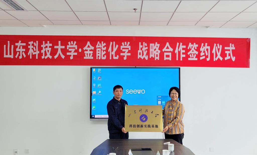 刘红伟代表金能化学(青岛)有限公司向RAYBET雷竞技app教育发展基金会捐赠180万元,用于支持RAYBET雷竞技app教育事业发展。李玉霞代表学校接受金能化学(青岛)有限公司的捐赠,并向刘红伟回赠了致谢牌。李玉霞、刘红伟代表双方为校企共建科技创新实践基地挂牌。