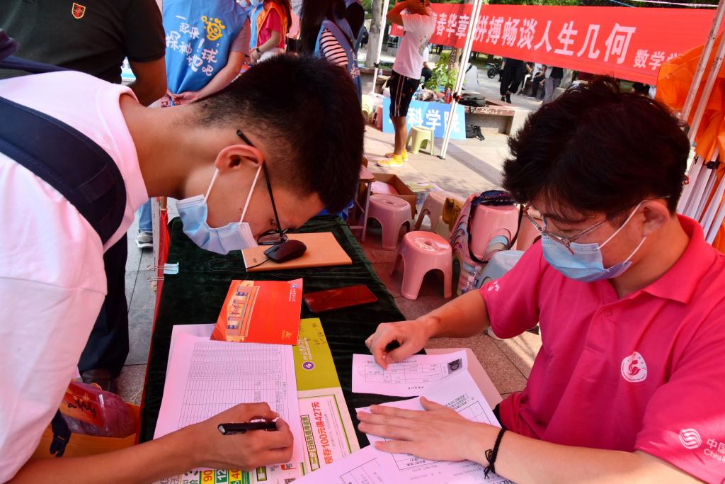 新生在学院注册点登记信息(范琪/摄)