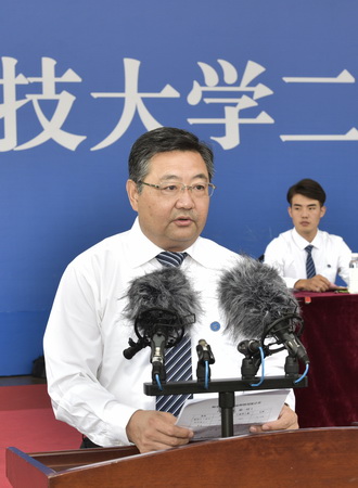 校领导、校党委领导班子成员罗公利、姚庆国、尹华、夏侯雪娇、张英杰、李玉霞、张建、李克周、陈涛出席典礼。典礼上,校党委书记罗公利向军训旅授旗,校长姚庆国讲话,校党委副书记尹华宣读军训决定和军训旅领导成员名单。典礼由党委学校办公室主任徐方全主持。