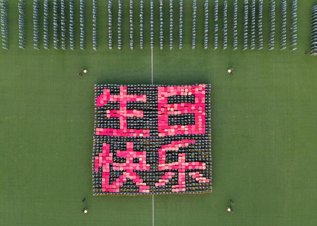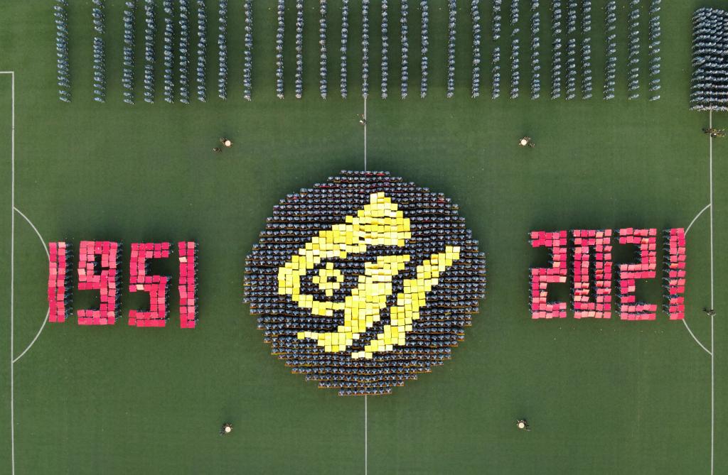 分列式后科目汇报开始,1300人的队形队列转换方阵呈现出“1921”“2021”“党徽”和“1951”“2021“校徽”图案,“生日快乐”的喊声更是带动起全场掌声雷鸣。擒敌拳、匕首操、综合实战演习等汇报表演展现了科大学子意气风发、斗志昂扬的精神面貌。最后,全场再次唱响《强军战歌》,全体2021级学生高喊“请党放心、强国有我、强军有我、强校有我”,是势如破竹的气概,更是掷地有声的承诺。