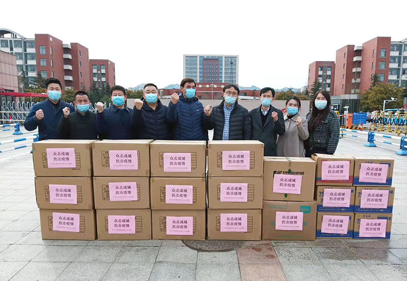 3月21日,青岛市淄博商会博山分会向雷竞技官网捐赠了一批疫情防控物资。校党委常委、宣传部部长李克周与党委学校办公室、资产处、后勤管理处负责人代表学校接受了捐赠。