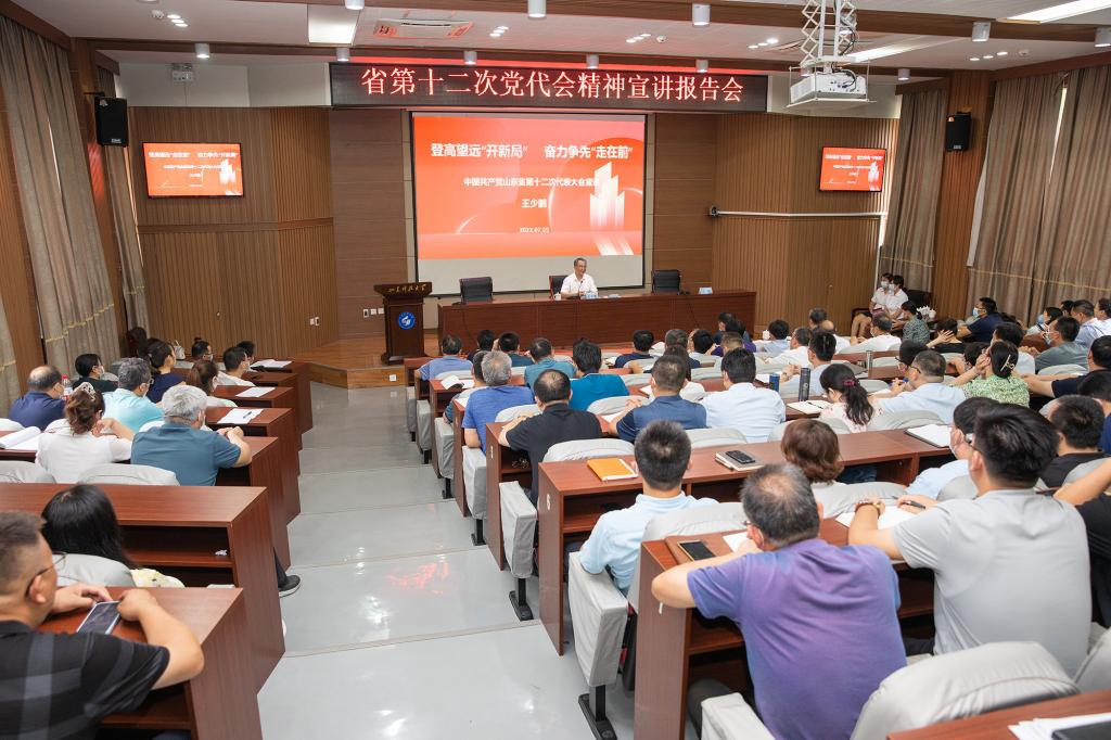 近日,泰安校区举办省第十二次党代会精神宣讲报告会,山东省第十二次党代会代表、校党委副书记兼泰安校区党委书记、管委主任王少鹏分别为泰安校区处级干部(学术副院长)、机关科级干部、教工党支部书记、思政课教师、学生工作干部,离退休工作处全体党员作宣讲报告。
