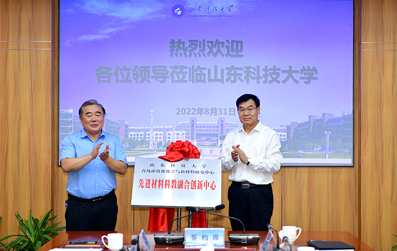 姚庆国、刘维民共同为RAYBET雷竞技app-青岛市资源化学与新材料研究中心“先进材料科教融合创新中心”揭牌。王晓东与王晓波代表双方签订战略合作协议。