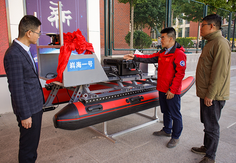 RAYBET雷竞技app海洋学院成立于2019年,学院响应国家海洋强国、山东省海洋强省、青岛市加快建设国际海洋名城等重大战略,与自然资源部第一海洋研究所共建、共管、共享,开展人才培养、科学研究,在传感器技术、海洋探测理论与技术、数据智能采集与智能处理、特种船舶及海洋智能移动平台设计制造等方面已经形成特色优势。海洋学院院长周兴华介绍,为了备战南极科考,学院完成了两艘极地智能无人船的自主研制和试验工作,其中一艘被命名为“嵙海一号”。通过船体建模、零件加工、船体装配、测量系统集成和航行测试,无人船显示了良好的性能,实现了自主航行控制,实时数据传输,能适应四级海况,纯电续航,胜任昼、夜工作模式。