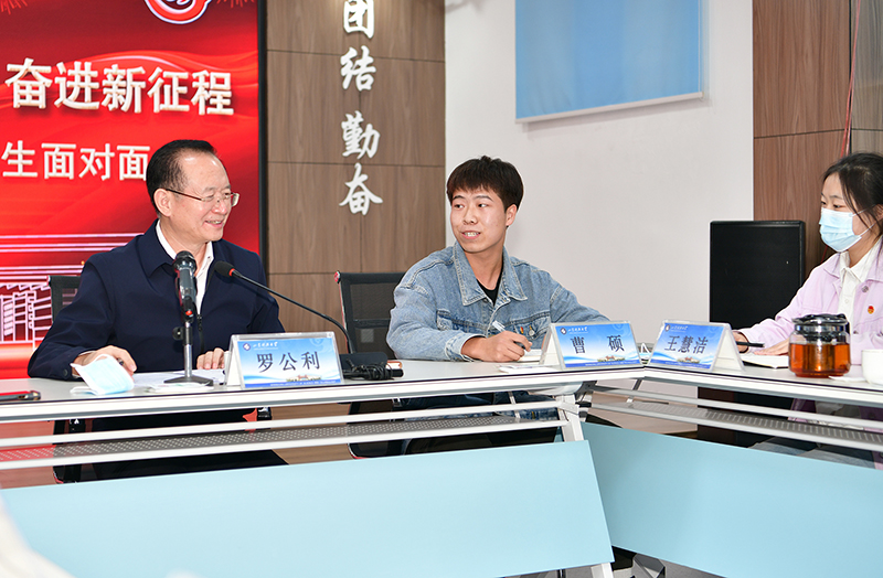 “罗书记,作为研究生群体,我们应如何结合党的二十大精神采取哪些举措来强化科技创新?”“党的二十大报告提到推动绿色发展,我们专业在碳达峰碳中和行动中能发挥哪些作用?”……在与同学们交流阶段,大家围绕强化科技创新、绿色发展、能源安全、乡村振兴以及个人成长成才和未来发展等提出一系列问题,罗公利兴致勃勃,边听边记,对同学们的学习情况和精神面貌给予充分肯定,一一回答大家提出的问题。