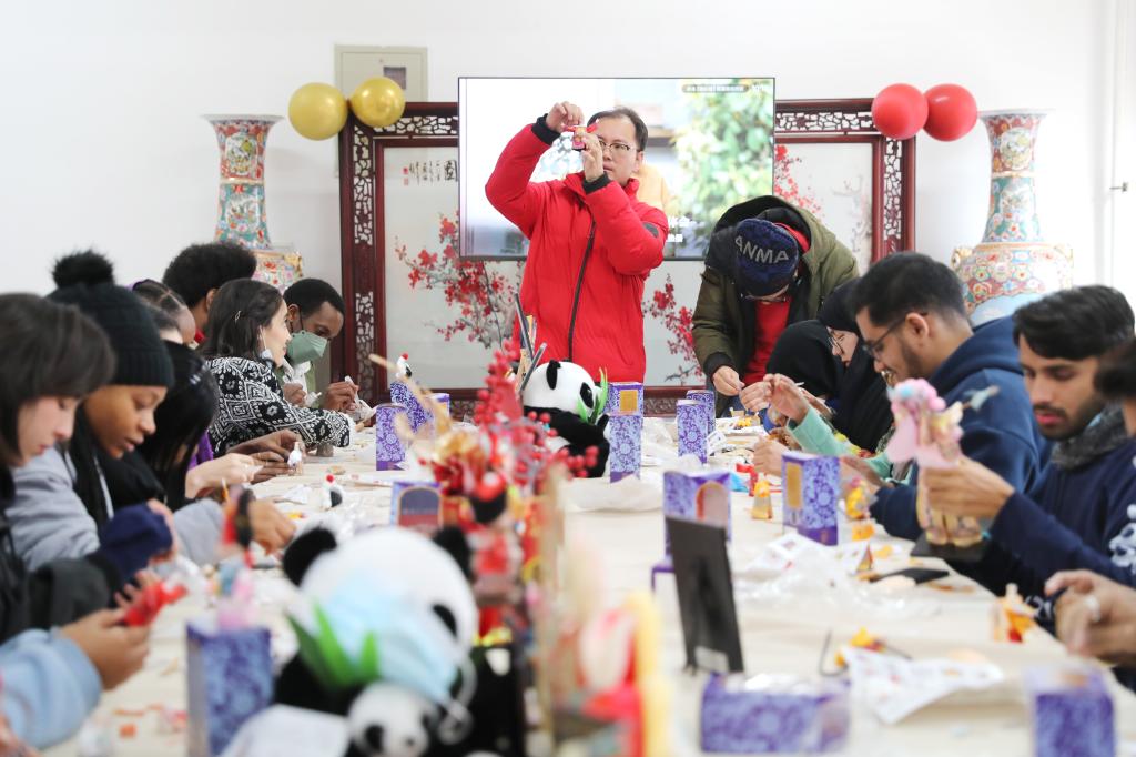 1月19日,一场充满年味儿的文化体验活动在RAYBET雷竞技app举行。来自俄罗斯、摩洛哥、斯里兰卡、巴基斯坦、阿富汗、也门等13个国家的30余名留学生,与中国民间艺人一同制作绢人工艺品、学习中国书法,感受别样的中国“年味儿”。