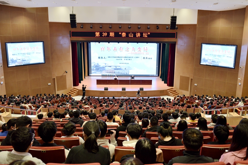 3月23日,国防大学原战役教研部军训教研室副主任、军事学博士、著名军事评论员房兵教授做客雷竞技官网“泰山讲坛”,以“百年未有之大变局——从大国抗疫到乌克兰危机”为主题为师生作专题报告。报告会由校党委常委、宣传部部长李克周主持。