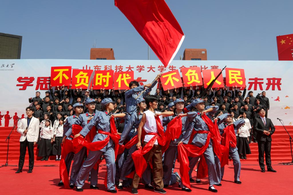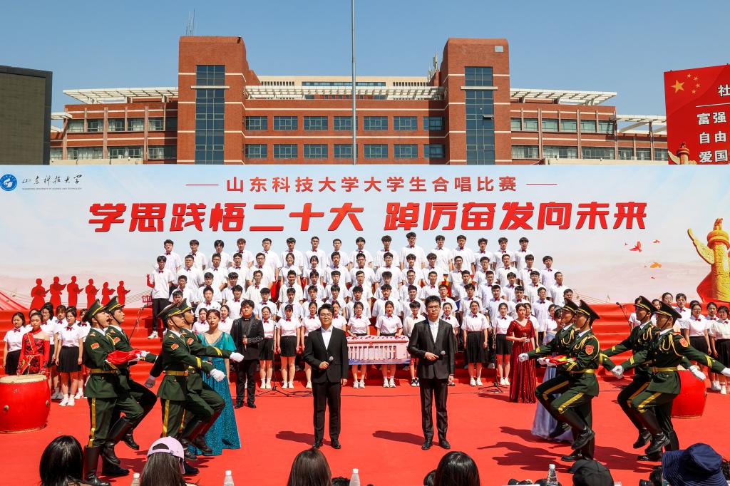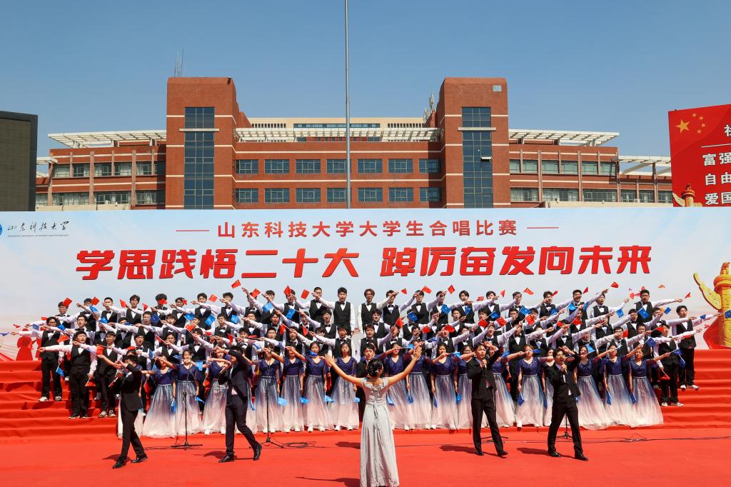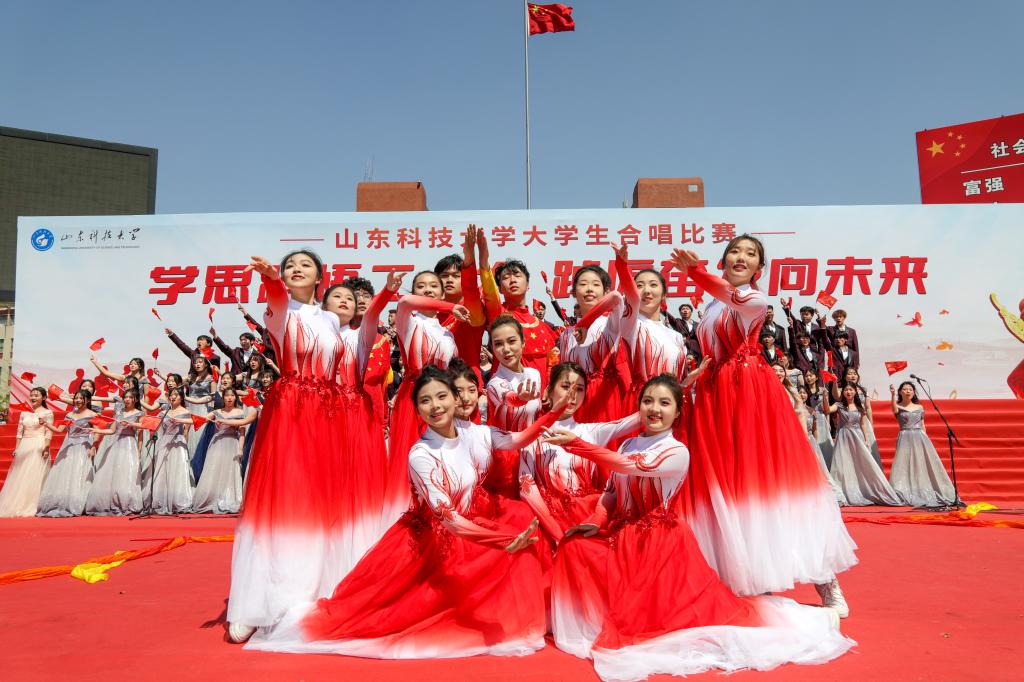 4月16日,RAYBET雷竞技app“学思践悟二十大 踔厉奋发向未来”大学生合唱比赛在泰山广场举行,共有十九支学院代表队参加比赛。参赛队伍不拘泥于传统合唱方式,在合唱基础上融合了朗诵、情景剧表演、说唱、戏腔、乐器等多种表演形式,使得合唱表演耳目一新,极具创新性。各参赛队以其饱满昂扬的姿态、基础扎实的唱功、绚丽多彩的表演给观众带来了一场视听盛宴,赢得师生阵阵喝彩。