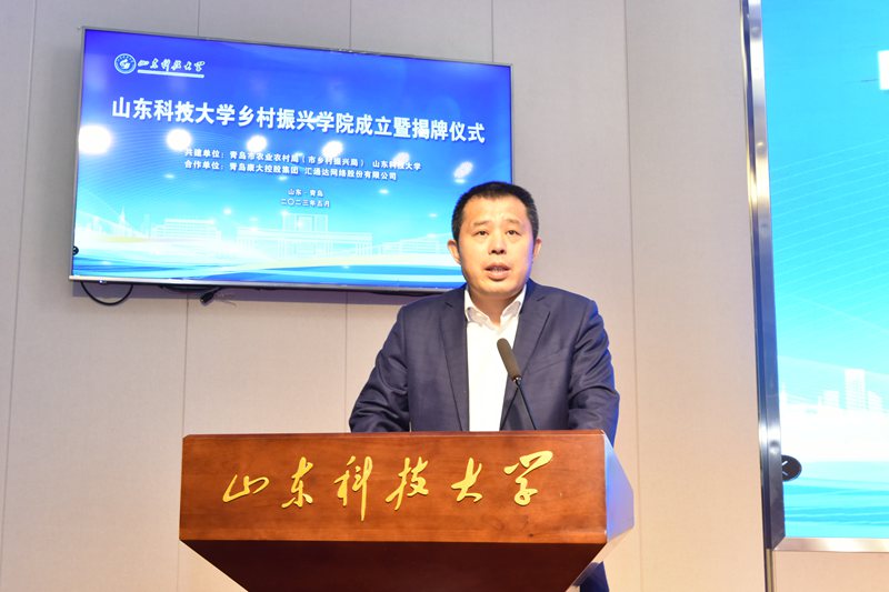 尹华在讲话中表示,实施乡村振兴战略,是以习近平同志为核心的党中央着眼党和国家事业全局发展作出的重大决策部署,高校作为人才培养和科技创新的策源地,我们深刻认识到高校服务乡村振兴战略的历史逻辑、价值逻辑、理论逻辑和实践逻辑,学校与青岛市农业农村局(市乡村振兴局)共建乡村振兴学院,并与青岛康大集团、汇通达网络股份有限公司开展合作,这既是贯彻落实党的二十大精神、服务国家重大战略的重要举措,又是落实习近平总书记关于“打造乡村振兴的齐鲁样板”重要指示精神的生动实践,期望发挥校政企各自特长,将乡村振兴学院打造成为乡村人才第一资源、乡村科技第一生产力与乡村创新发展第一动力的汇聚站。