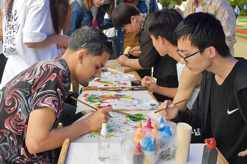 游园活动在喜庆祥和的舞龙表演中拉开帷幕。随后,太极拳表演,一招一式尽显刚柔之气、神韵之美;14名中外汉服古装爱好者带来汉服走秀,向师生展示汉服文化的魅力;二胡合奏赛马,阵阵“马蹄声”让现场瞬间沸腾;12名少数民族学生带来的舞蹈表演,展现了民族舞蹈的特有魅力,点燃了现场的气氛。