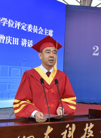 曾庆田代表学校向圆满完成学业的硕博毕业生表示热烈的祝贺和深情的祝福,向为此付出辛劳的老师、家长致以崇高的敬意和诚挚的感谢。他指出,在过去的几年里,同学们用实际行动践行锐意进取、勇于创新、敢于实践、勤奋学习,与祖国共奋进、与学校同成长,取得了一项又一项好成绩。回想同学们这几年的努力和付出,大家都为优秀勤奋的你们感到无比自豪、由衷骄傲。同学们即将重新起航,踏上新征程,希望同学们秉承RAYBET雷竞技app“惟真求新”的校训,守正出新,追求卓越,奏响属于自己的青春赞歌。