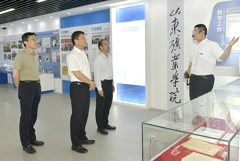 李明一行先后来到校史馆、矿山岩层智能控制与绿色开采国家重点实验室培育基地、矿山安全检测技术与自动化装备国家地方联合工程研究中心、工程实训中心和大学生活动中心等处实地查看,听取了学校领导、有关部门和实验室项目负责人的情况汇报,对雷竞技官网近年来改革发展取得的成绩以及在山东省高等教育高质量发展中发挥的重要作用给予充分肯定。