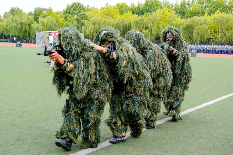 党委书记罗公利宣布军训分列式正式开始,在澎湃激昂的音乐中,19个军训营迈出铿锵有力的步伐,以最饱满的状态先后接受检阅。随后,新生们轮番展示了擒敌拳、匕首操、综合实战演习等特色科目,展现了科大学子斗志昂扬的精神面貌,体现了坚韧不拔、发奋图强的科大精神。