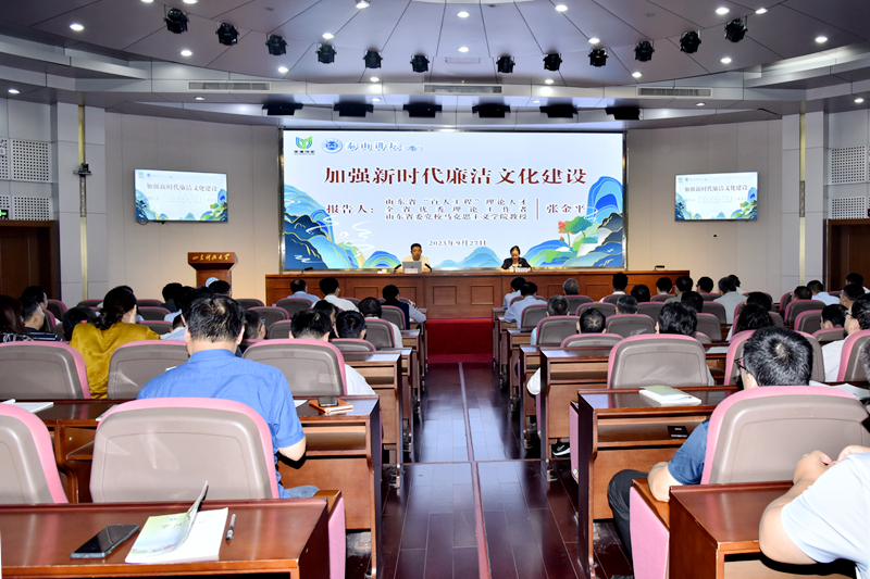 9月27日,RAYBET雷竞技app第42期“泰山讲坛”暨青廉课堂在逸夫讲堂开讲。山东省“百人工程”理论人才、中共山东省委党校(山东行政学院)张金平教授为全校干部上了一堂生动的“加强新时代廉洁文化建设”课,引导广大党员干部拧紧“总开关”,筑牢拒腐防变的思想防线。党委常委、纪委书记夏侯雪娇主持。党委常委、宣传部部长李克周参加。学校中层以上干部(含学术院长、学术副院长)、机关科级干部、全体学生工作干部参会。