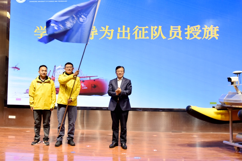 徐龙飞为科考队员、雷竞技官网青年教师杨继超、魏峥嵘授旗。他指出,南极科考事业是为国争光的事业,是高校服务国家的重要工作。他向无人船研制取得的成果表示祝贺,向关心支持学校发展的企业公司表示衷心的感谢,学校将继续服务于国家海洋战略,积极支持极地智能无人船的科考事业。
