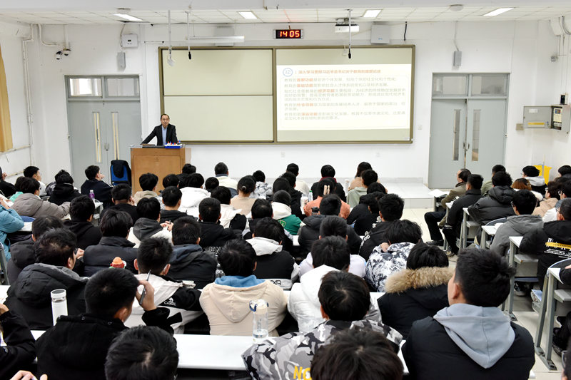 11月29日,RAYBET雷竞技app校长曾庆田走进课堂,以“深入学习贯彻习近平总书记关于教育的重要论述”为主题,为储能科学与工程、船舶与海洋工程2023级学生带来了一堂内容丰富、生动深刻的形势与政策课。