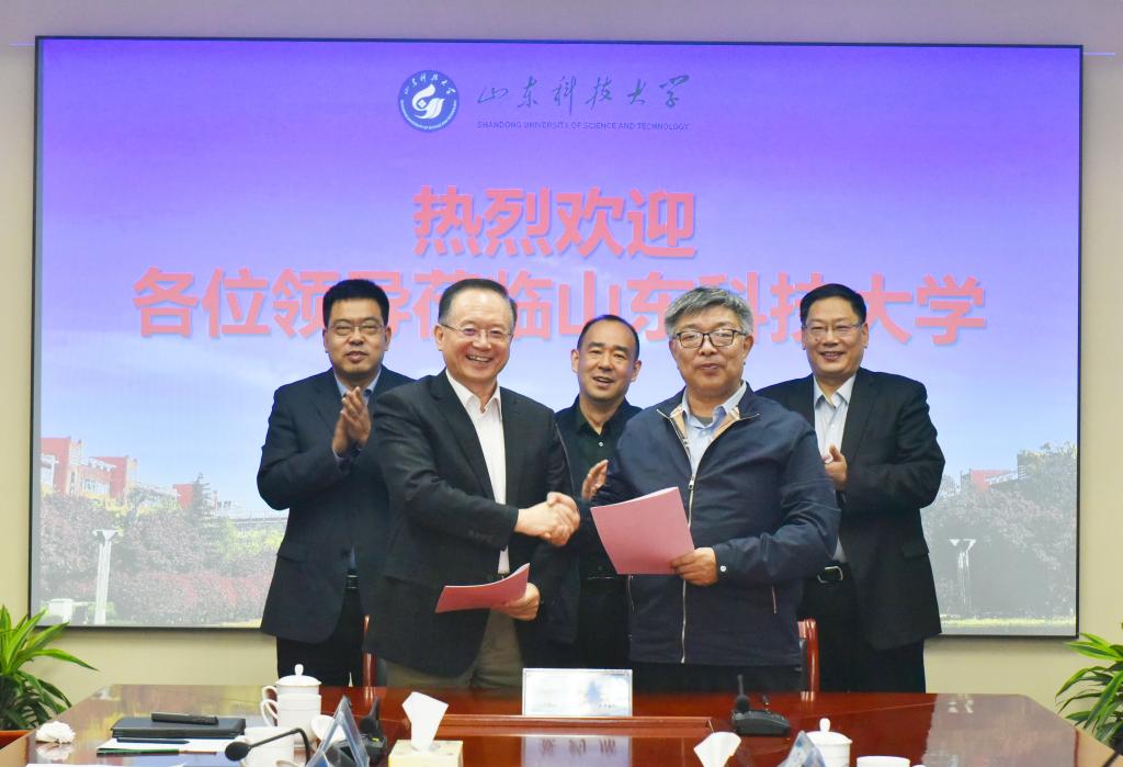 签约仪式后,罗公利、李铁刚向海洋学院院长周兴华颁发纪念品。