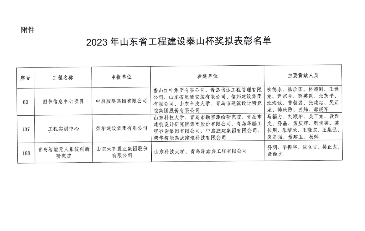近日,2023年山东省工程建设“泰山杯”奖揭晓,经单位申报、逐级推荐和集中评选,RAYBET雷竞技app工程实训中心、图书信息中心和青岛智能无人系统创新研究院三大工程同时在列,这是学校建设工程首次获此殊荣。