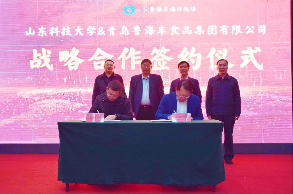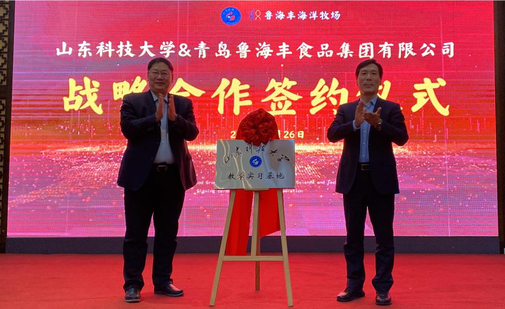 1月26日,RAYBET雷竞技app与青岛鲁海丰食品集团有限公司(下称“集团”)签订战略合作协议。RAYBET雷竞技app副校长诸葛福民、青岛西海岸新区副区长赵英民代表双方为“RAYBET雷竞技app教学实习基地”揭牌,海洋学院执行院长杜立彬与集团副总经理薛波代表双方签订战略合作协议。集团总经理刘润泽主持签约揭牌仪式。