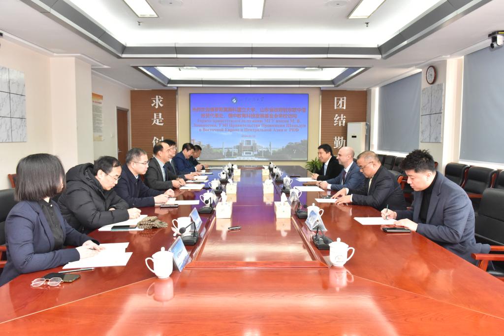曾庆田介绍了学校2023年下半年开展的作为山东省首批试点高校,完成教育部新一轮本科教育教学审核评估等四项关键性工作。他指出,下一步将积极推进中俄高层次创新园区建设,在两校优势学科、基础学科、新兴学科等领域开展高层次人才联合培养,在古生物学、计算机科学等领域开展师生交流、教育科研合作、共建合作平台等方面深化与莫斯科国立大学的务实合作。