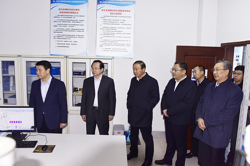 在校党委书记罗公利、副书记王少鹏的陪同下,崔洪刚一行参观了学校校园和矿山灾害预防控制国家重点实验室(培育),听取了矿业学院院长谭云亮教授和实验室负责同志的讲解。每到一处,崔洪刚都饶有兴趣,不停地询问、交流,对学校科研团队取得的成果和发展方向表示赞赏。