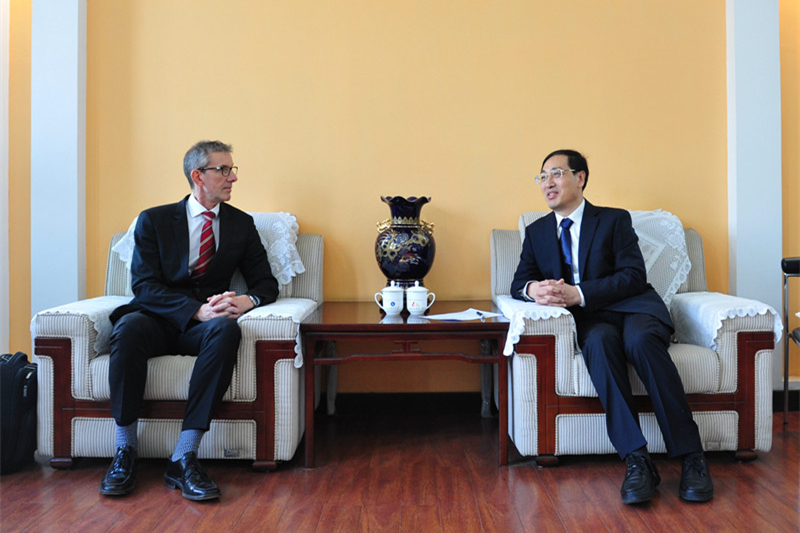 国际交流合作处处长赵向东和济南校区管委会、财经系、合作办学办公室相关负责人陪同会见。(济南校区供稿 摄影:云兵兵 责编:徐展)