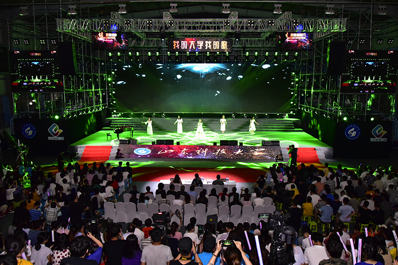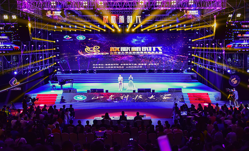 校党委副书记尹华、副校长高建广、山东教育电视台副台长陈泽河及各参赛高校相关负责人在现场观看比赛。两位主持人简要介绍了RAYBET雷竞技app的基本情况。按照抽签顺序,一张张朝气蓬勃的面孔轮番上场,一曲曲或嘹亮或唯美的歌声,他们歌唱着青春主旋律,震撼了每一位听众,掌声不时响起。比赛现场群情激昂,扣人心弦,高潮迭起,观众手持“手机和荧光棒”激情挥舞,掌声与喝彩声交相辉映。