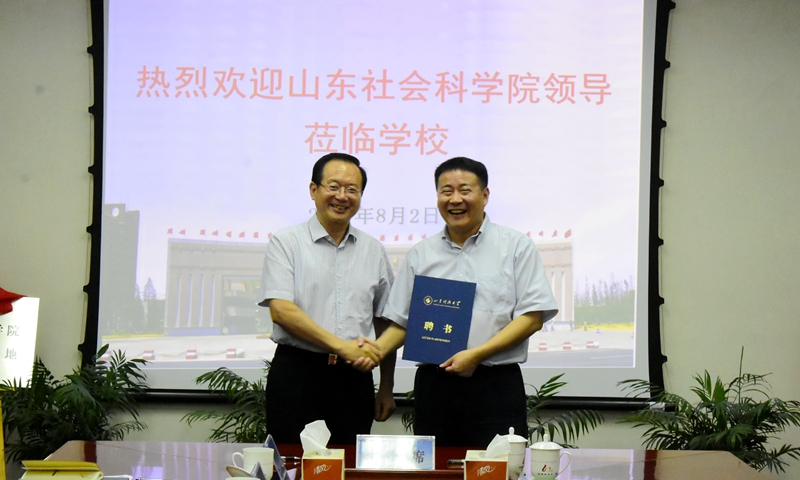 签约仪式后,罗公利分别为唐洲雁及山东社科院科研处处长张凤莲、政策研究室主任韩冰等颁发聘书。