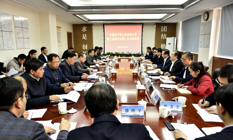 罗公利从“加强党的建设,树牢党委领导核心”“完善顶层设计,凝聚师生人心”“坚持目标引领,打造优势特色”“深化教学改革,提高人才培养质量”“坚持增量提质,建强人才队伍”“强化科技创新,提升服务社会能力”“坚持扩大开放,提升国际化办学水平”“坚持共建共享,构建和谐校园”8个方面报告了校党委2019年主要工作。他指出,2019年学校各项事业取得了新的成绩,但也面临诸多困难和问题,面对当前发展形势,需要凝聚全校师生员工的智慧和力量,紧紧围绕第三次党代会确立的目标任务和思路举措,进一步解放思想、更新观念,全力推进实施“十大工程”,细化工作落实,提升工作实效,以高度的政治责任感和历史使命感,以改革创新的精神和敢于担当的勇气,抢抓历史机遇,团结一心,攻坚克难,为学校在新时期的改革与发展做出更大贡献。