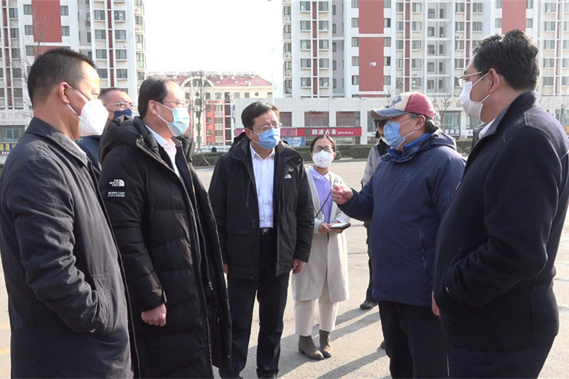 2月1日,西海岸新区管委主任、区长周安到RAYBET雷竞技app家属区山海花园调研疫情防控工作,工委区委常委、政法委书记顾清弥,副区长张磊娜等一同调研。