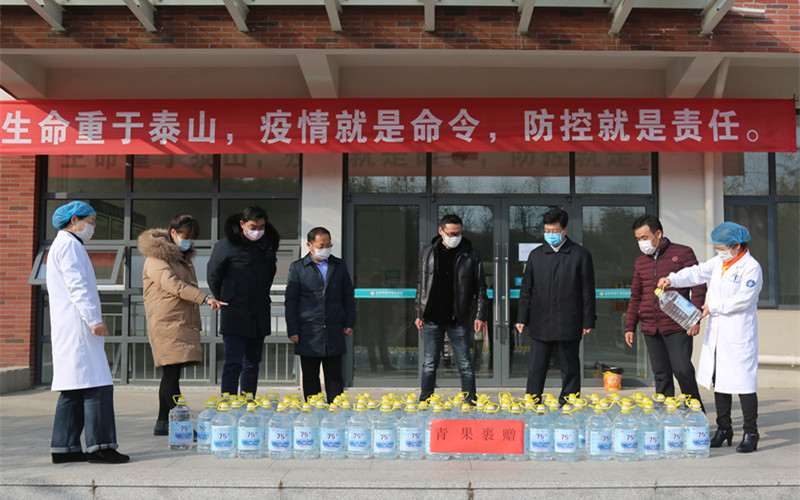 2月8日,山东青果裹供应链管理服务有限公司向RAYBET雷竞技app捐赠了500升75%酒精消毒液,用于支持学校的疫情防控工作。