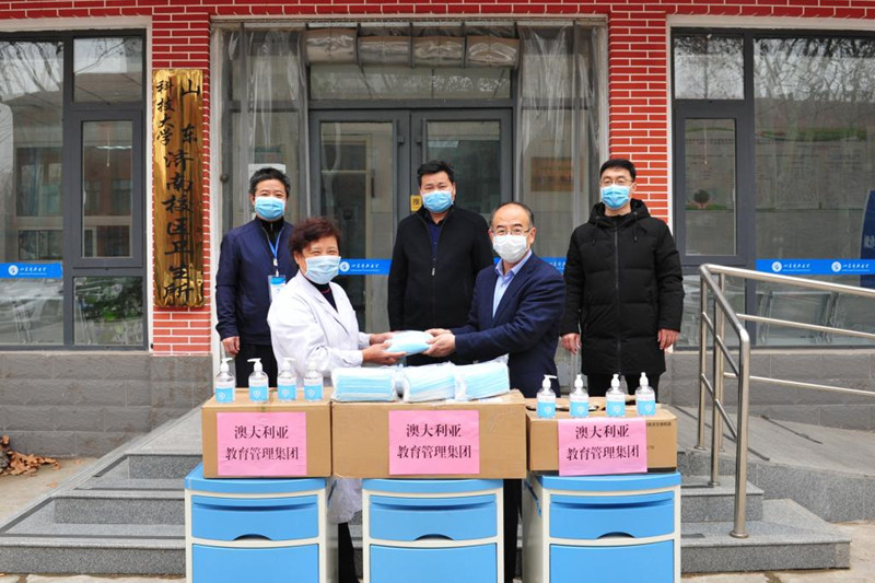 近日,澳大利亚教育管理集团向济南校区捐赠了一批急需防控物资,支持校区当前新冠肺炎疫情的防控工作。济南校区相关负责人代表校区接受了捐赠,感谢澳大利亚教育管理集团的支持,表示一定利用好这批物资,为疫情防控发挥作用。