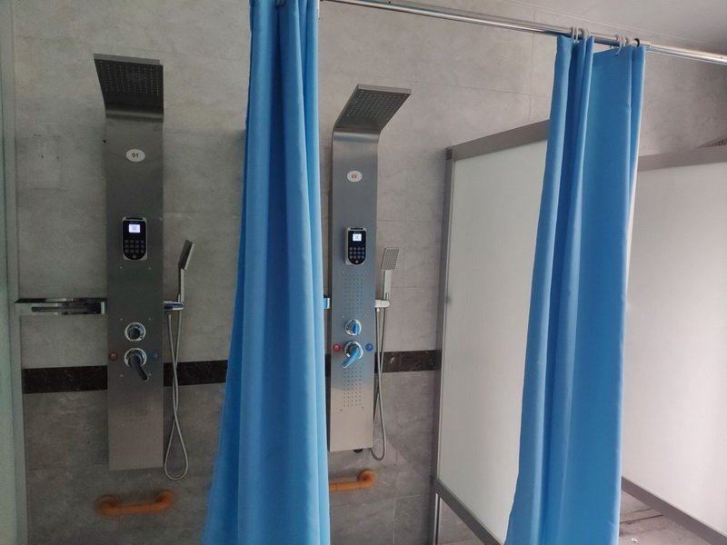 考虑到夏季同学们洗澡聚集问题,学生公寓专门建设了“洗浴间”,每个洗浴间有8个淋浴位并进行了隔断,安装了排风系统,洗浴间采取干湿分离的设计,配套有更衣柜、更衣镜等。
