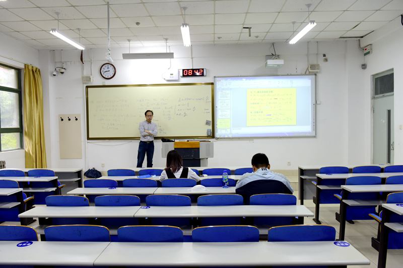 在1号教学楼,地科学院苗佳丽老师在为2017级地质工程专业同学们上海洋工程地质学专业课。她这样说道:“本来我这个课有60个学生,因为要严格按照要求间隔就座,所以我让大家按照学号分成来教室的和在线上观看的。很多同学都说感觉憋坏了,憋了半年,终于可以来教室上课了,大家都很珍惜来之不易的上课机会。我本身也憋坏了,一直在线上给大家上课,现在终于有机会和同学们面对面交流,感觉好激动,教学效果也提高了不少。”
