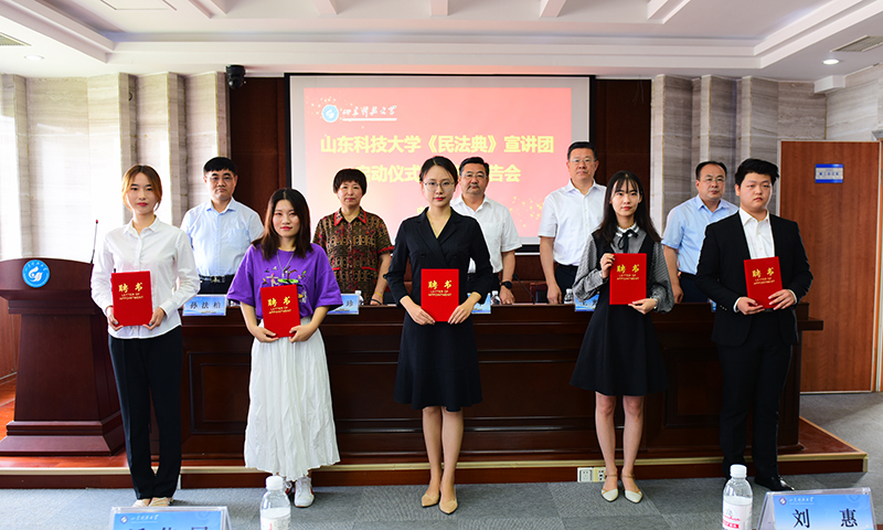 在宣讲团成立启动仪式上,RAYBET雷竞技app党委副书记尹华代表学校致辞,RAYBET雷竞技app党委常委、宣传部部长李克周宣读《关于成立RAYBET雷竞技app〈中华人民共和国民法典〉宣讲团开展宣讲活动的通知》,青岛市黄岛区人民法院党组书记、院长王光金,青岛西海岸新区司法局党委委员、副局长张光珍到会祝贺并讲话。成立仪式上,有关领导为宣讲团教师和学生代表颁发了聘书。
