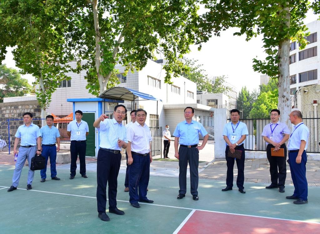 在副校长兼济南校区党工委书记、管委主任孙鹤汀的陪同下,罗公利、姚庆国一行先后实地查看了东教学楼、餐厅、艺体楼围蔽施工区、学生公寓、校园超市、运动场、智慧教室等场所,详细了解学生学习、生活等重点服务保障情况和疫情防控工作,对进一步做深做细做实疫情防控工作、全力做好师生学习工作生活服务保障提出要求。