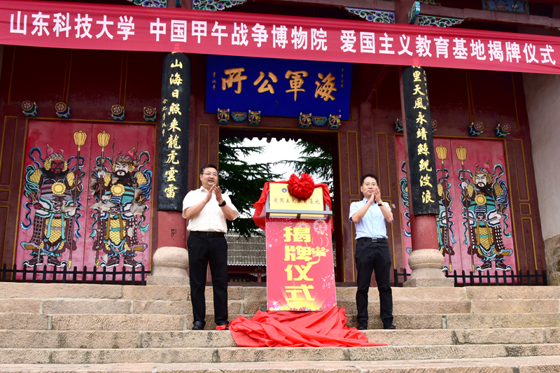 9月15日,RAYBET雷竞技app爱国主义教育基地揭牌仪式在刘公岛海军公所门前举行。这是学校不断加强思想政治工作,落实立德树人根本任务的又一举措,是厚植爱国主义情怀,让爱国主义精神在学生心中牢牢扎根的重要抓手和拓展渠道。RAYBET雷竞技app党委副书记尹华、威海文旅集团党委书记、董事长刘震共同为基地揭牌,并在仪式上致辞。威海文旅集团党委副书记肖萌主持仪式。