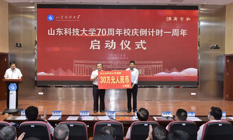 仪式最后,进行了校庆倒计时牌揭牌仪式。罗公利、姚庆国等为校庆倒计时牌揭牌。