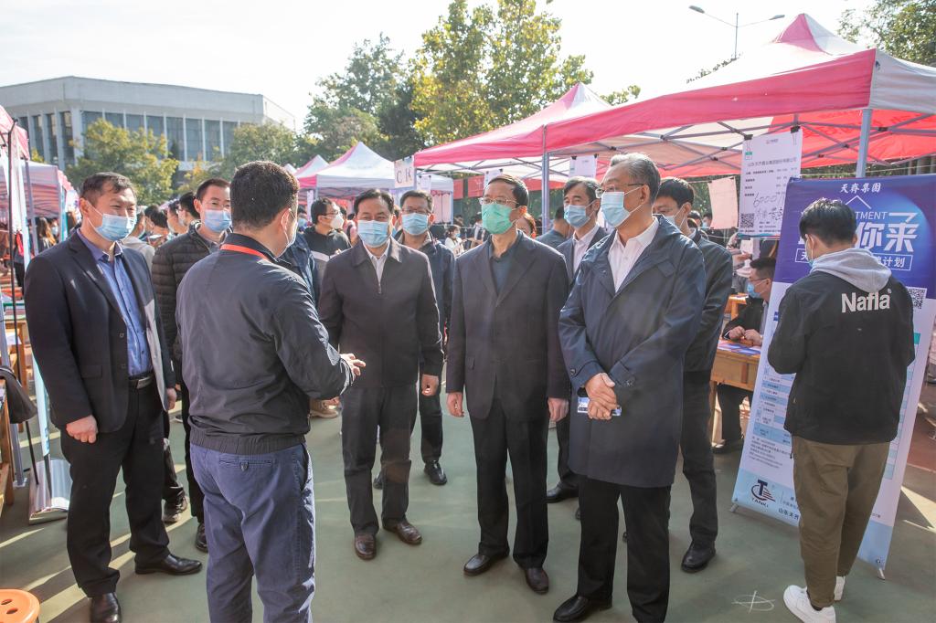 10月25日,“多彩校招”2020年山东省高校毕业生集中招聘活动专场暨RAYBET雷竞技app泰安校区毕业生供需见面会在泰安校区东校园排球场举行。校党委副书记兼泰安校区党工委书记、管委主任王少鹏,山东省公共就业和人才服务中心就业服务处副处长杨高扬,泰安市人才交流中心主任徐太国到供需见面会现场指导工作,看望用人单位及求职学生,并与用人单位负责人和现场毕业生进行交流。