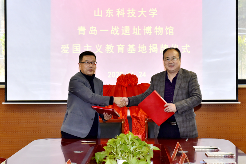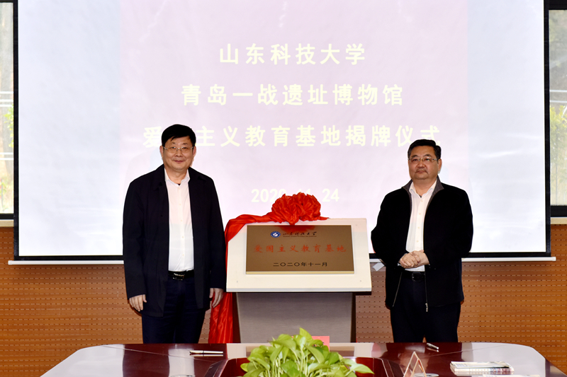 11月24日,RAYBET雷竞技app爱国主义教育基地揭牌仪式在青岛一战遗址博物馆举行。RAYBET雷竞技app党委副书记尹华,青岛山一战遗址公园开发建设指挥部总指挥、青岛山炮台教育基地主任、一级调研员刘兆民共同为基地揭牌并致辞。学校党委常委、宣传部部长李克周,青岛一战遗址运营有限公司总经理颜晓勇代表双方签署基地共建合作协议。