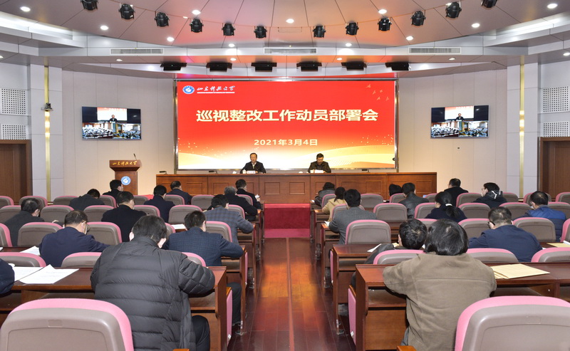 为全面落实省委巡视组反馈意见,扎实做好学校巡视整改工作,3月4日,学校召开巡视整改工作动员部署会。校党委书记罗公利主持会议并讲话,校党委副书记尹华就省委巡视组反馈意见整改落实工作做出部署。校领导、校党委领导班子成员,各部门、各单位主要负责人参加会议。