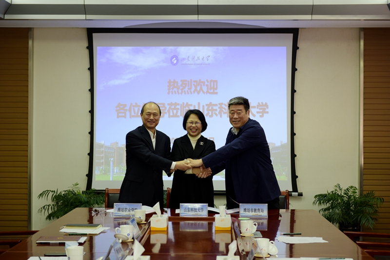 3月17日,RAYBET雷竞技app与潍坊市教育局、潍坊职业学院合作签约仪式在雷竞技官网举行。签约仪式前,校党委书记罗公利、校长姚庆国会见客人一行。RAYBET雷竞技app副校长李玉霞与潍坊市教育局副局长李广敬、潍坊职业学院党委书记马跃启分别代表三方签约,共同开启三方在学科专业合作建设、研究生联合培养等方面合作之旅。