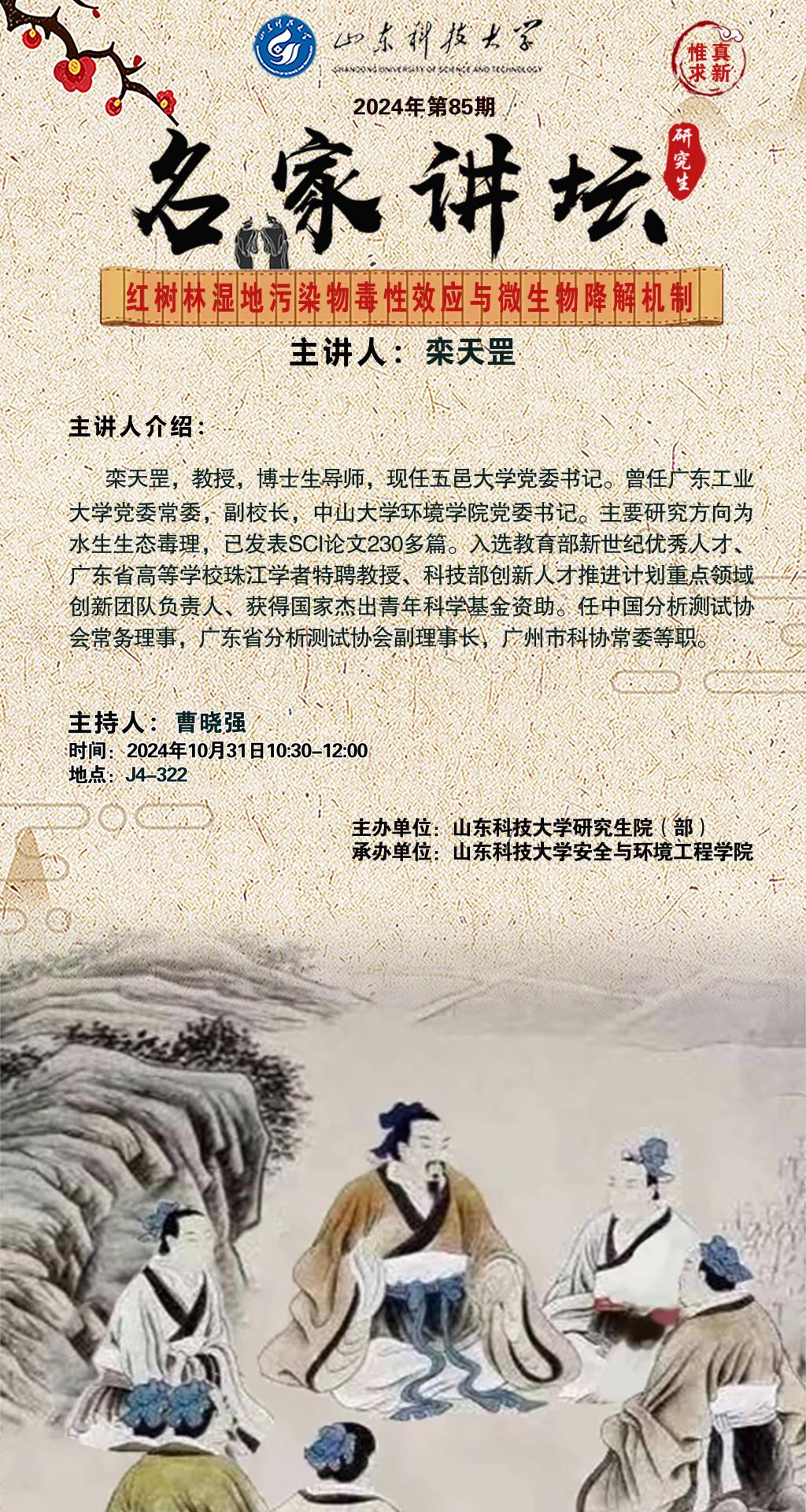 “名家讲坛”2024年第85期:红树林湿地污染毒性效应与微生物降解机制(总979期)